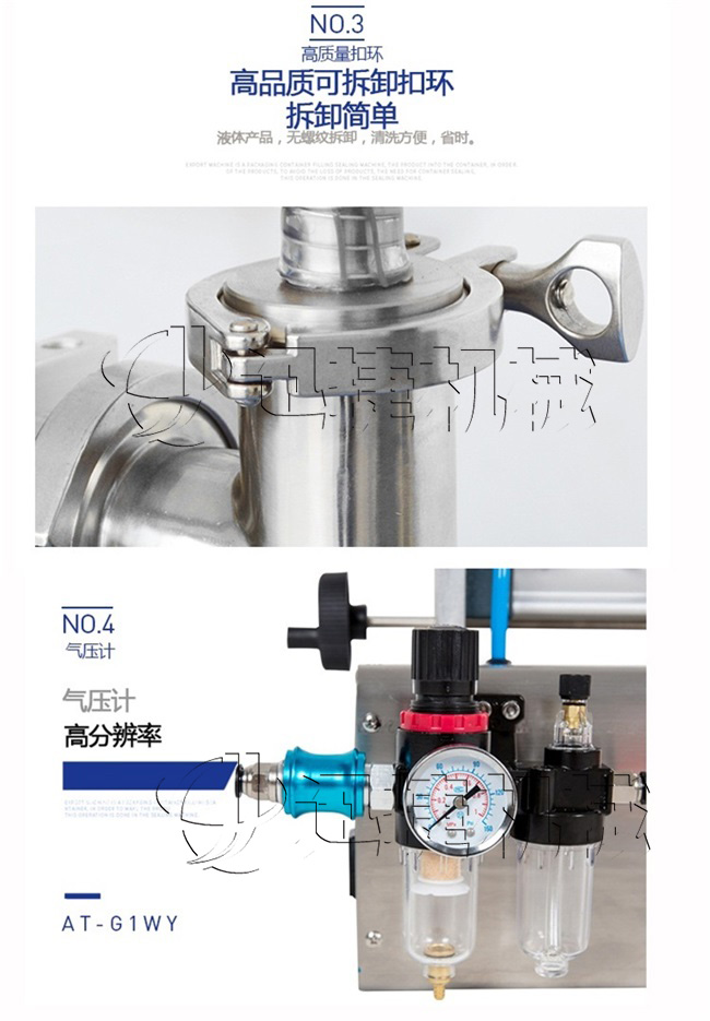 1.小型液體灌裝機氣動部分均采用德國FESTO和日本SMC的氣動元件;